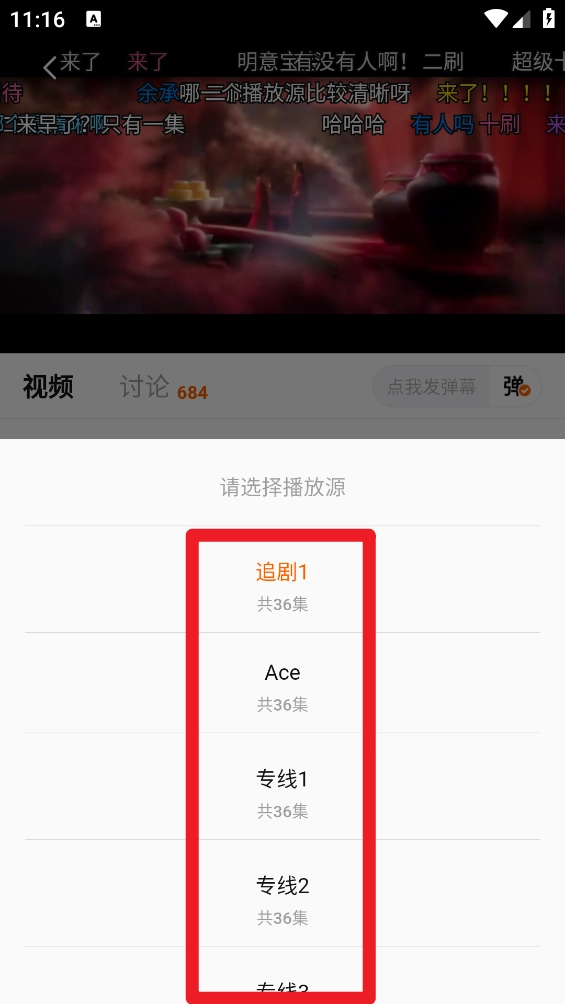 还可以开启全屏观看后点击"播放源"。