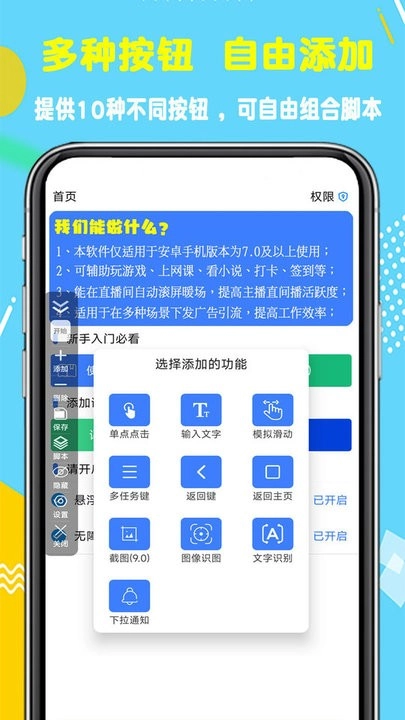 功能十分丰富,涵盖点击、滑动、返回、文字输入、文字识别、图片识别、截图等十余种操作;