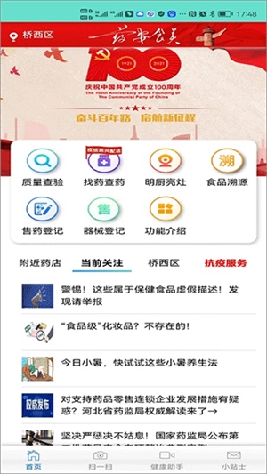 首页还提供各类查询功能、新闻资讯以及附近药店等服务。