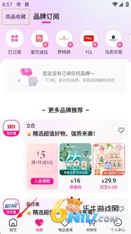 4、如果找不到自己喜欢的品牌,点击左下角的“首页”返回。