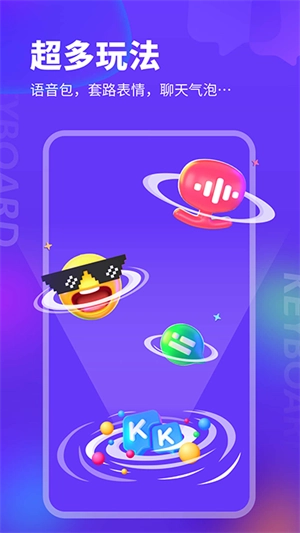 KK键盘是一款实用性很强的手机输入法,它运用了前沿的人工智能技术,除了具备便捷的输入模式和智能联想功能外,还为用户提供了独特网名、刷屏连发、特殊字符、游戏弹幕、聊天套路、优美文案等多样化功能,用户还能自由更换输入法皮肤,让聊天过程更具趣味性。
