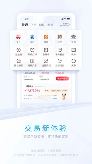 5、将交易、行情、资讯、理财、账户管理等核心需求整合于一体。无需在多个应用间切换,即可完成从信息获取到投资决策的全过程,实现了高度的便捷性。