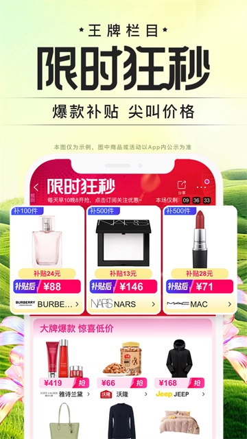 限时疯狂秒活动每天上午10点与晚上8点准时更新,精选爆品还享政府补贴。价格低至手价,性价比超高。