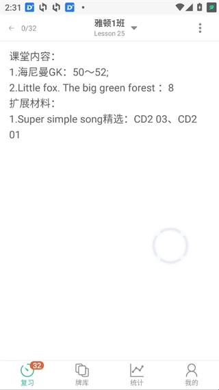 在【复习】界面,系统会依据抗遗忘算法来规划当日的学习任务。