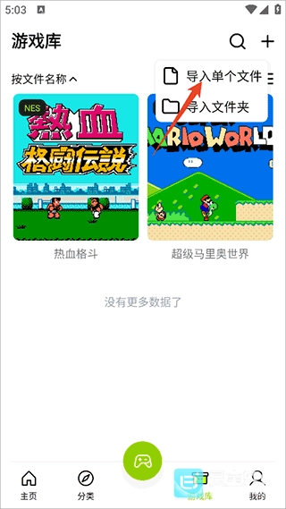 你也可以点击右上角的添加按钮,导入游戏文件来游玩。