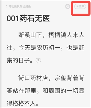 在阅读器界面,点击屏幕中央区域,或者点击右上角的【菜单】按钮,就能进入阅读菜单。