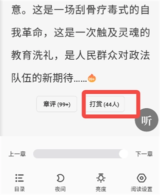 方法二:在书籍阅读页的每个章节结尾处找到打赏入口,点击该入口后选择心仪的礼物完成打赏操作。