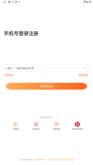 输入好手机号码后直接点击获取验证码;