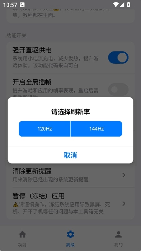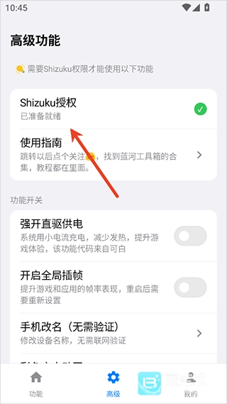 而类似强制开启直驱供电功能这类操作,需要用户借助Shizuku授权来激活使用。