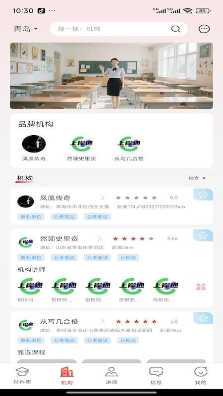 3、通过机构搜索栏输入关键词,可快速定位目标培训机构或课程资源。