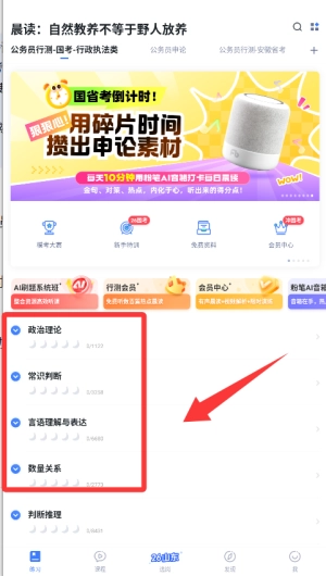完成安装与注册流程后,登录系统,选择公务员或事业单位等考试类型,进而应用并设定备考目标。