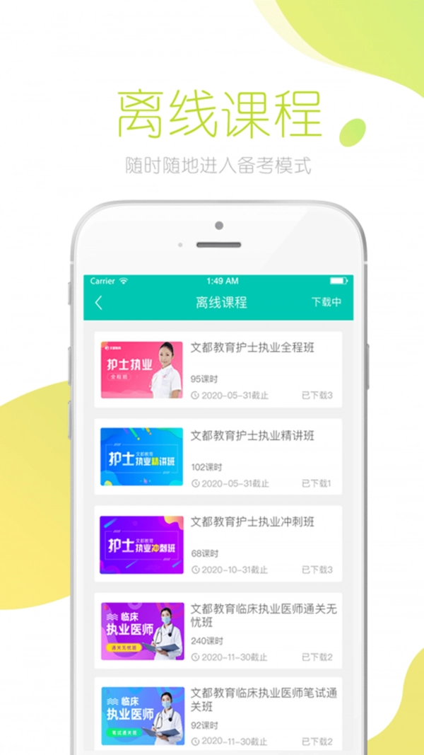 文都医考是世纪文都教育科技集团旗下精心打造的在线教育应用,为广大在校学生、社会在职人员提供医学领域的各类课程服务,涵盖医师资格、执业药师、护士执业、卫生职称等多种课程。凭借清新的界面设计与人性化的操作,助力您随时随地学习名校课程。