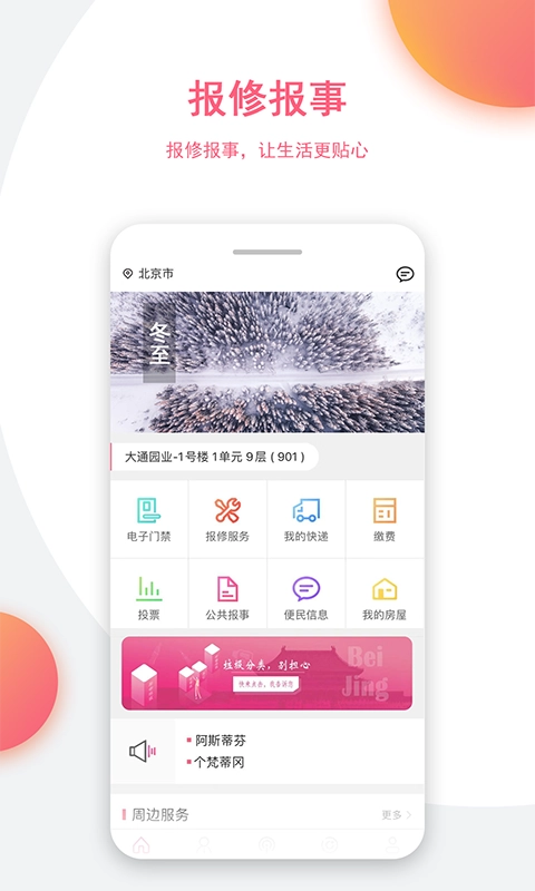报修、报事、公告、投票,以及水电燃气费用的在线缴纳服务,让生活更加便捷。