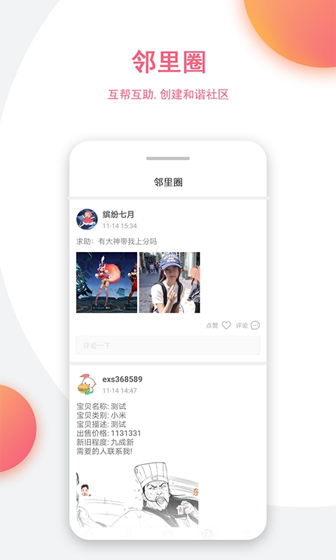 二手物品流转、邻里互助支援、技能交流分享、邻里圈新鲜动态,携手共建和谐社区。