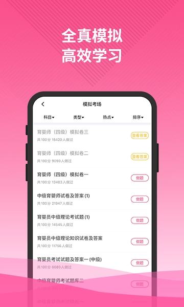 育婴师是一款学习软件,用户可以在这里学习保姆考试的专业知识,考试题目也很全面。我们可以每天打开这个软件进行自主学习,在线进行更真实的模拟测试,及时了解自己的优缺点,从而更好地提高成绩。