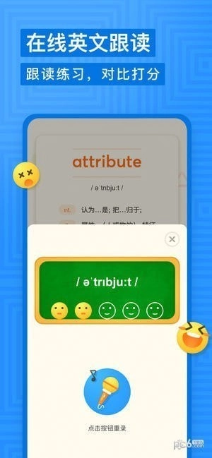 跟读练习:在有道少儿词典的英文界面里加入跟读练习功能,结合发音打分机制,助力儿童提高英语听说水平。