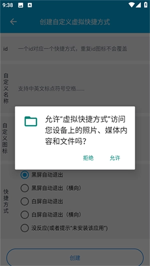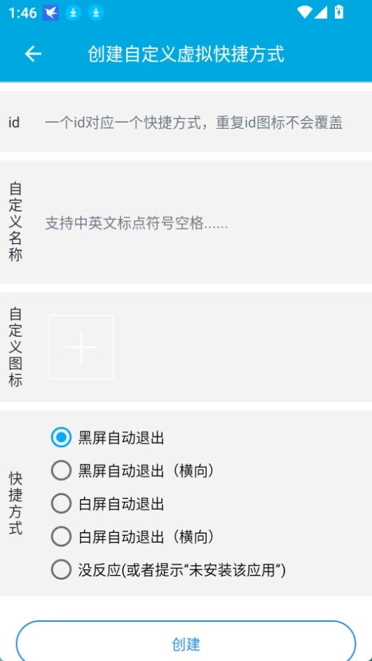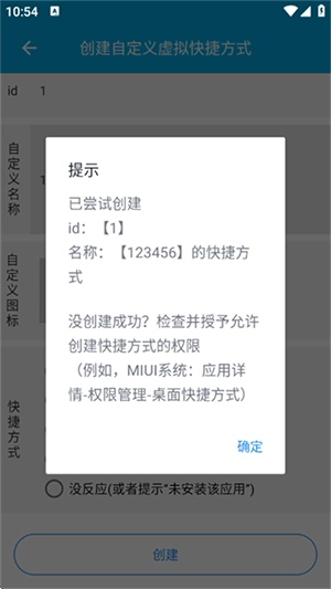 可自行设置输入id、名称和图标,选定快捷方式后点击【创建】按钮。