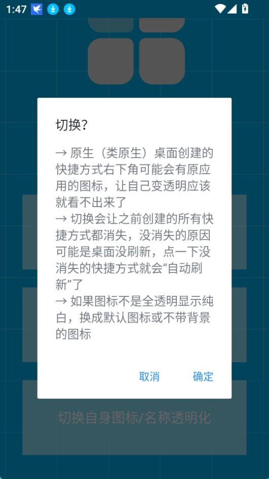 可一键切换自动图标或名称透明化。