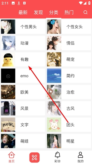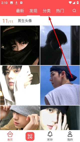 在头像应用的首页,点击顶部的【分类】选项,即可进入头像类型的分类筛选页面。
