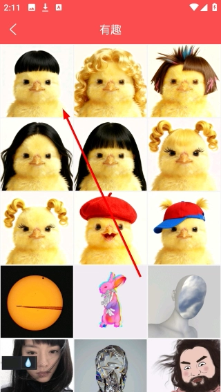 在分类页面里选择【有趣】分类,就能进入该分类下的头像素材展示列表。