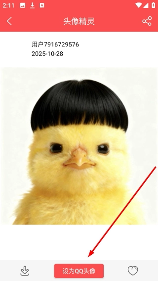在头像详情页面,点击【设为QQ头像】按钮,即可完成将该头像设置为QQ个人头像的操作。
