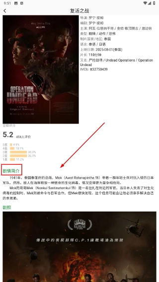 在影视完整详情页,你可以查看演职人员信息、评分数据以及完整剧情,从而全面了解作品的相关内容。