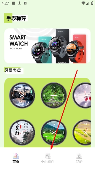 在【手表标环】应用的首页,点击底部的【小小组件】选项,即可进入小组件的功能展示页面。