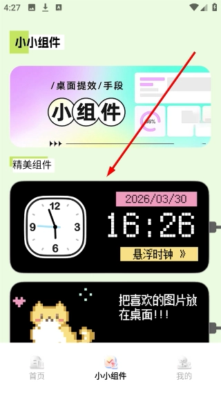 在小小组件页面,点击【悬浮时钟】组件,进入该时钟的参数设置界面。