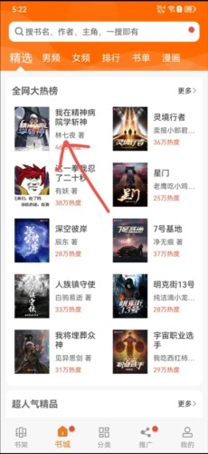2、进入应用首页后,点击目标小说的图标。