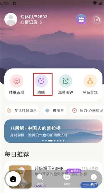 幻休助眠是一款专注于睡眠质量检测的服务型应用。它致力于为用户提供全方位的助眠服务,不仅能够针对各类失眠问题展开深入且有效的分析,还能提供专业化的音乐伴眠服务。在这款应用里,用户可以直观地看到自己的睡眠分析结果,通过这种可视化方式,助力用户改善睡眠质量,有效缓解失眠困扰。