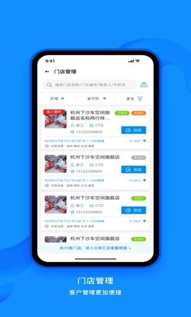 门店管理涵盖以下功能:在线签约、新店申请、门店审核、门店信息变更、合同签约以及巡店。