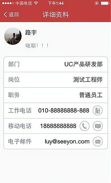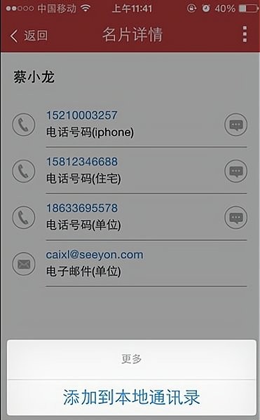 3、通讯录:再也不用将同事的电话全存进手机通讯录了;
