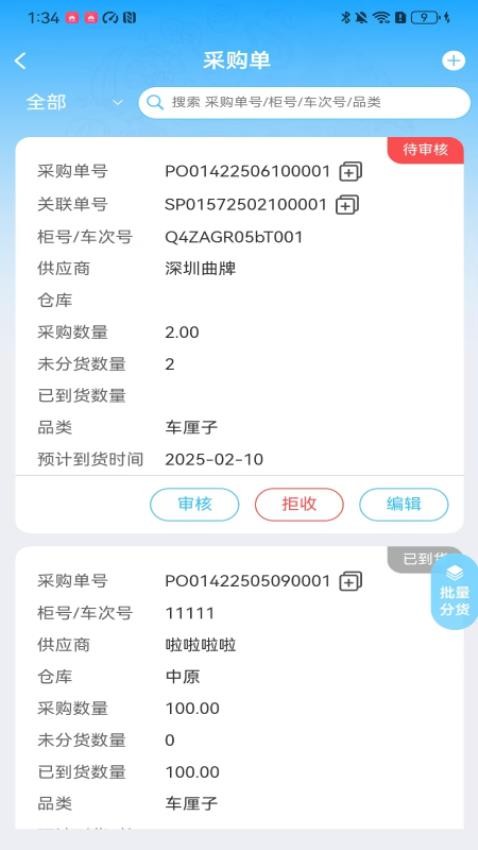 4、详细编辑需要的采购单,对采购单就可随时进行审核。