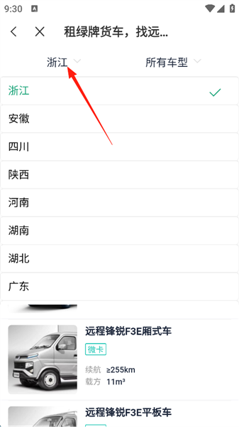 4、点屏幕右上角的“所有车型”,可以筛选车辆类型。