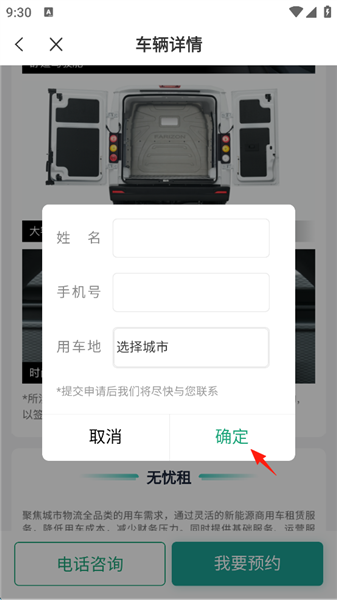 7、填写相关信息,最后点击窗口右下角的“确定”,等待相关工作人员和你电话联系。