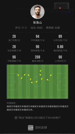 可用于追踪足球场上球员的跑动距离、不同阶段的速度,以及传球和射门的位置与力量。