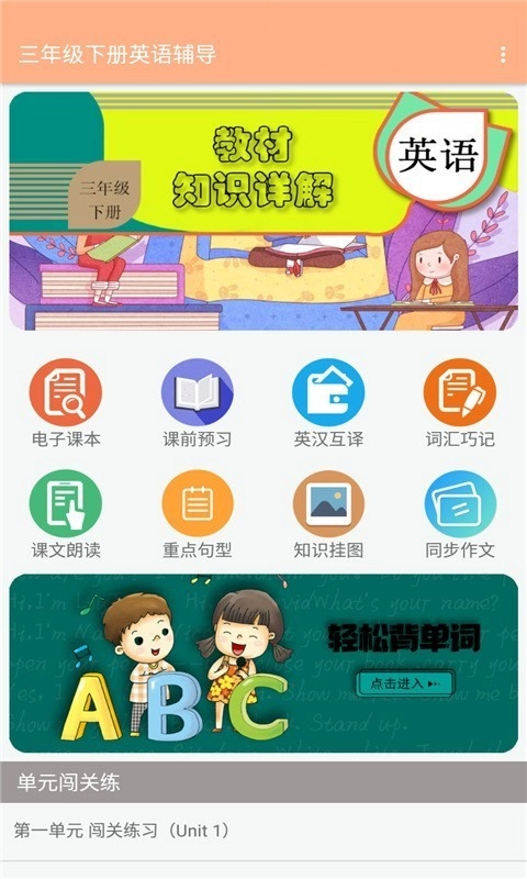 三年级下册英语辅导是一款能让英语知识点学习变得轻松的应用,它对教材里的知识点展开了全面剖析,借助这款应用,学习者可以随时随地进行知识学习。