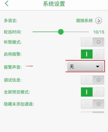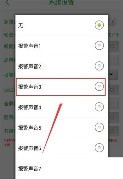 4、当报警开关开启后,会呈现报警声音设置选项,默认状态为无声音。您能够通过点击下拉框,对报警声音进行设置。