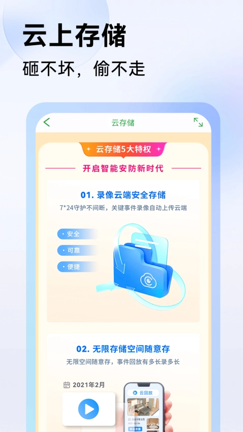 Seetonng是一款专为有远程监控需求的用户打造的手机软件,功能十分强大。它能与家庭场所安装的摄像头配合使用,当你安装并连接好摄像头后,就能通过手机实时知晓监控画面的情况,还能查询历史影像,为你的生命和财产安全提供有力保障。不仅如此,这款软件还支持将摄像头拍摄的内容保存至云端,使用起来极为便利。有需要的朋友,赶快安装体验吧!
