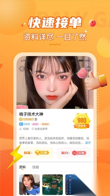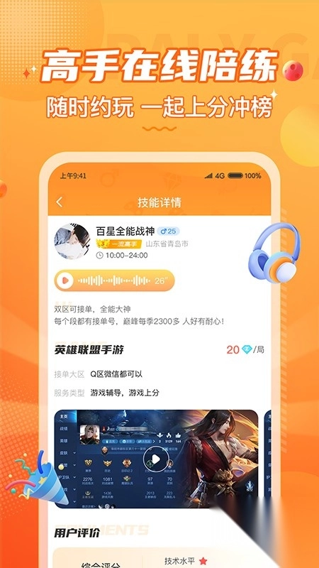 陪玩开黑,欢乐无限:在线1v1连麦,随时随地约战,共享游戏乐趣。