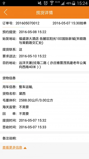 可以清晰查看详细的货物信息,若有任何问题也能通过电话联系。