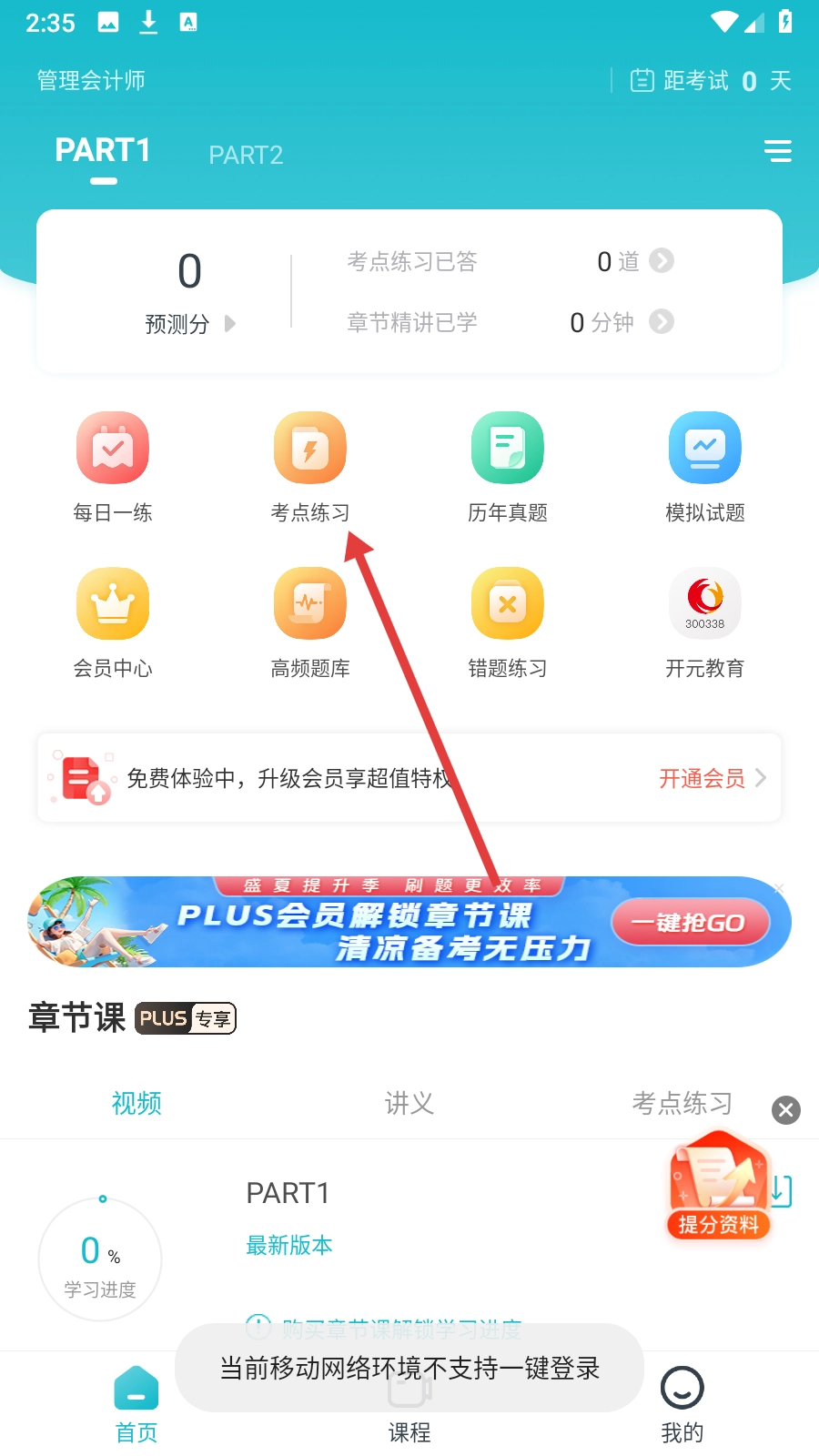 1、打开管理会计师准题库,点击【考点练习】进入页面。