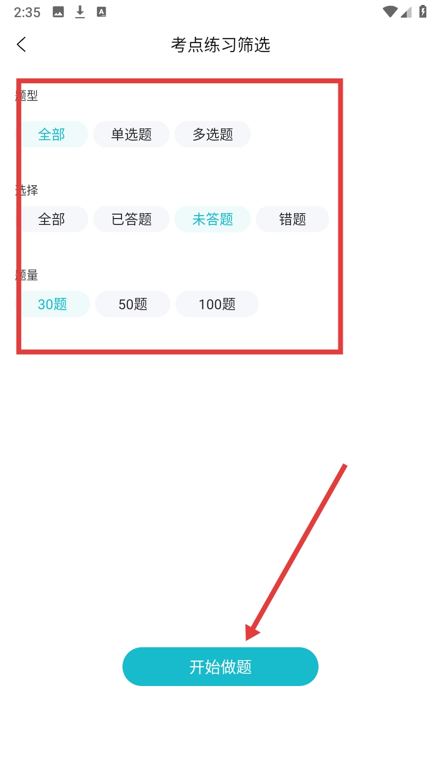 3、筛选完成后,点击【开始做题】进入试卷页面。