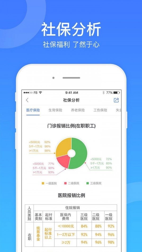 提供覆盖全国300多个城市的社保查询服务,可查询养老保险、医疗保险、生育保险、失业保险、工伤保险等各项社保的明细信息。