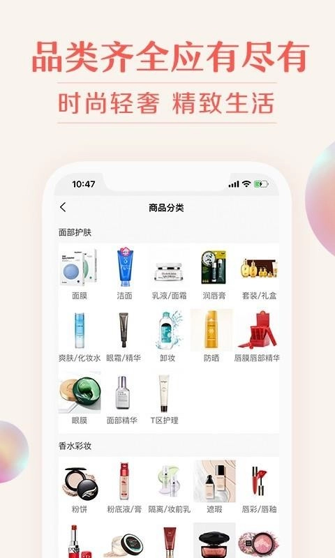 涵盖面部护理、时尚彩妆、美体塑形、男士护肤、美发洗护等多个品类,可满足不同用户的多样化需求。