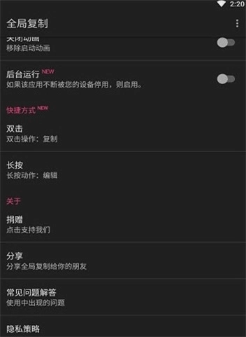 全局复制是一款系统工具类软件。借助长按功能,我们能够复制所有文本内容。它为用户省去了更多复制步骤,还能让您快速搜索或编辑已复制的内容。此外,还有其他一些功能可供免费体验。