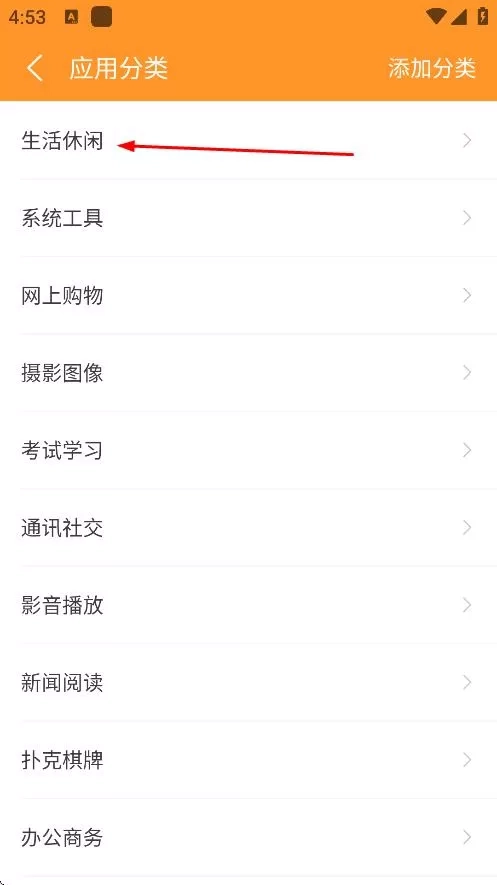 3、在应用分类页面,点击生活休闲,进入生活休闲类应用列表。