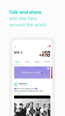 这是一款备受用户青睐的追星社区应用,Weverse为粉丝与偶像搭建了互动交流的桥梁。你既能加入各类话题的热烈讨论,也能通过Weverse安卓版本购买明星周边商品和演唱会门票。软件操作简便,感兴趣的朋友不妨来本站下载体验!