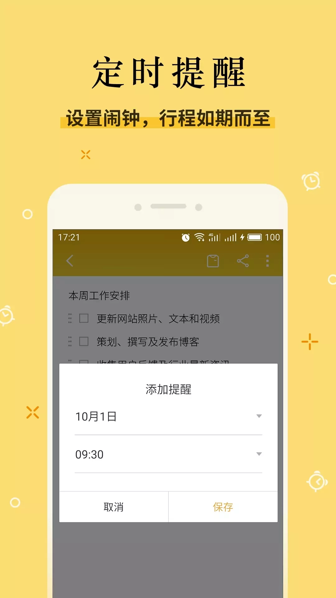 优化定时提醒功能,设置闹钟,行程如期而至。