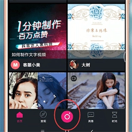 首先在手机上安装美册音乐相机,然后点击底部的拍摄按钮。
